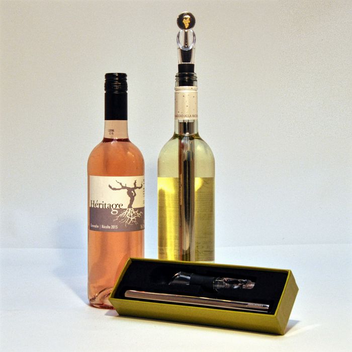 De koelstaaf houdt de wijnfles wijn op de ideale drinktemperatuur.